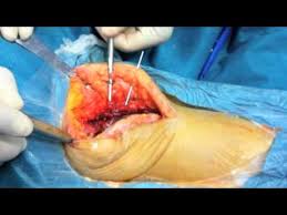 Un'altra opzione è quella di tagliare la tibia e il femore, quindi inserire un cuneo di osso, che può essere preso dal bacino o da una banca dell'osso.
